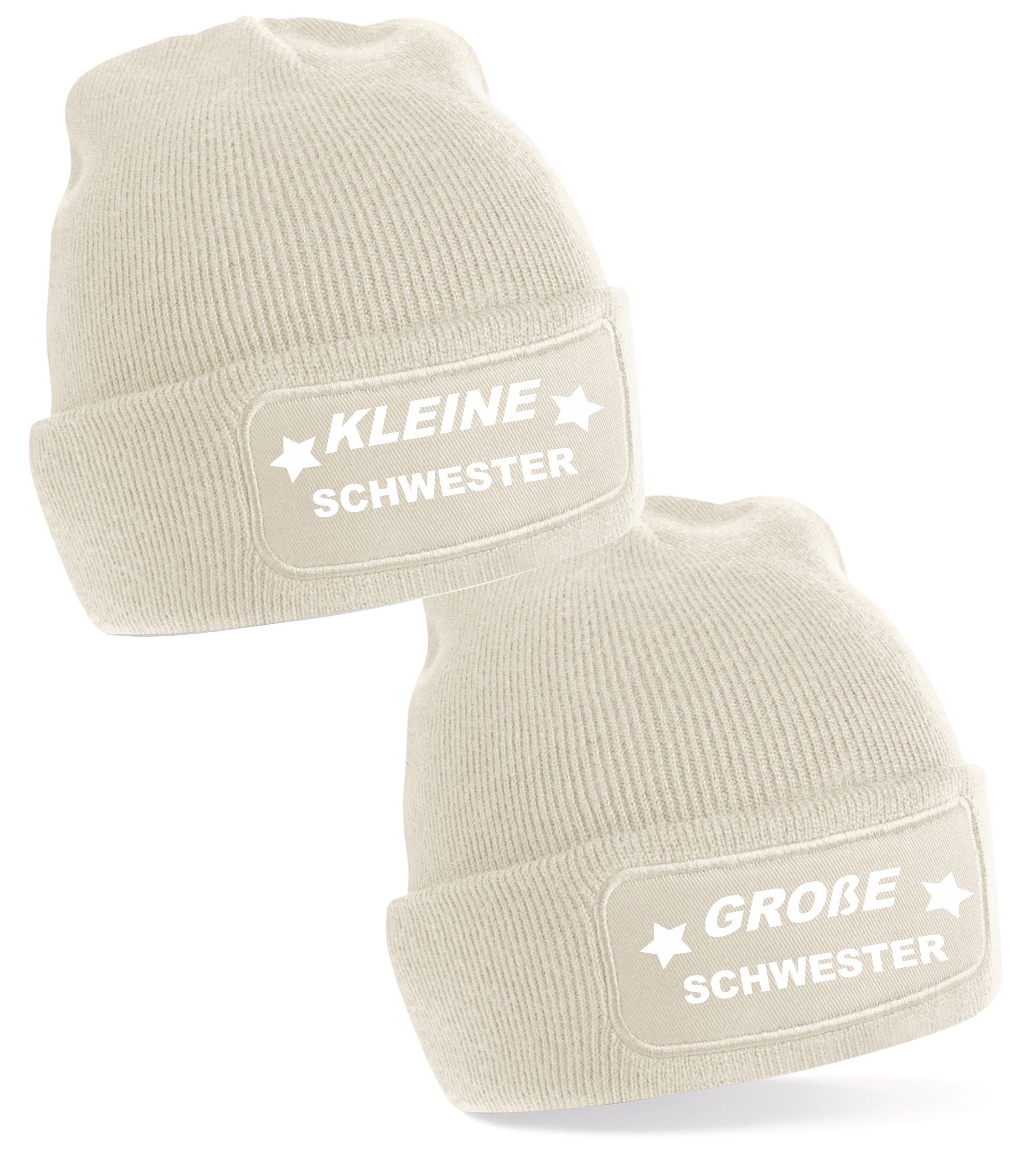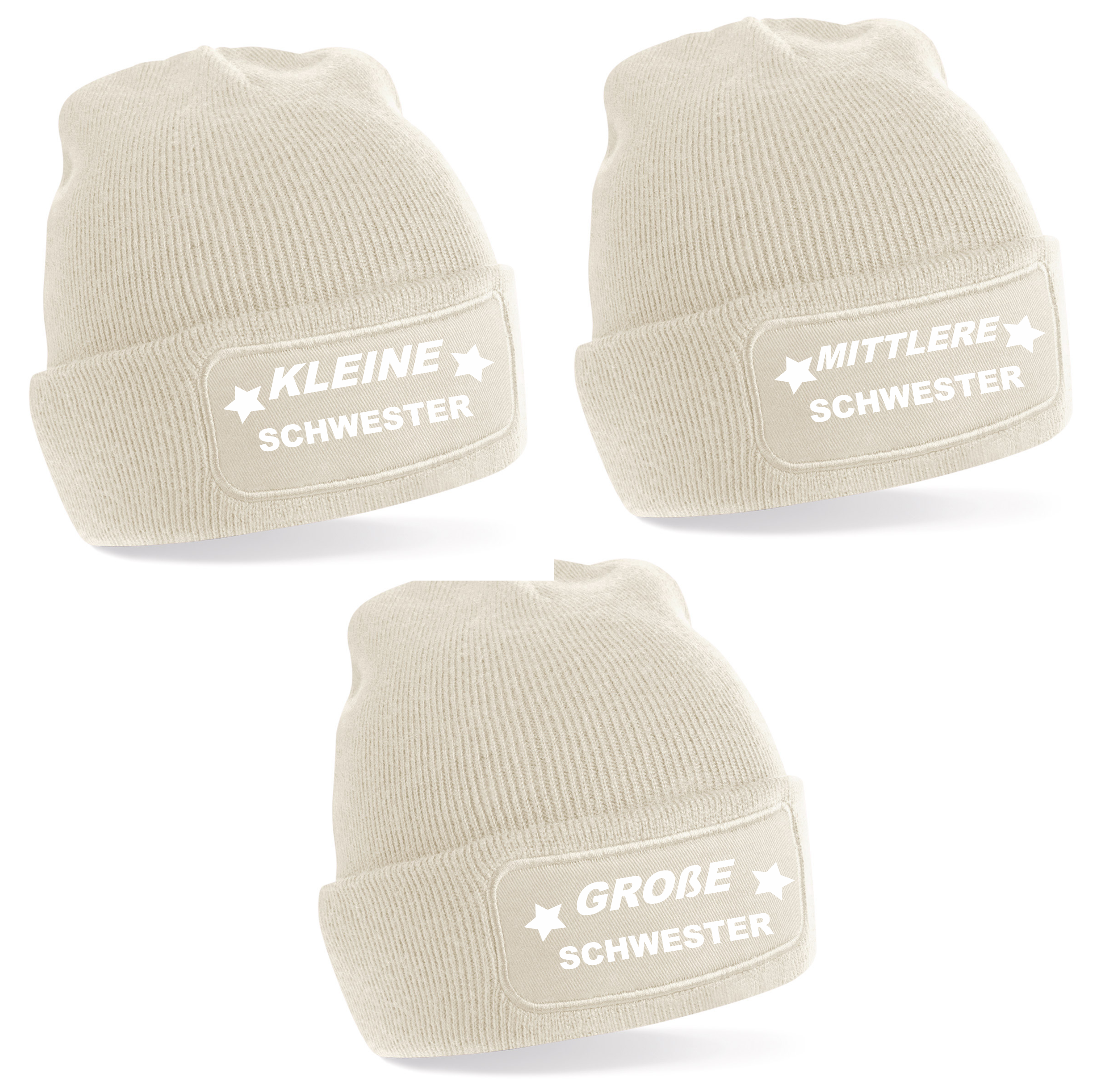 2er oder 3er Set Mützen mit Aufschrift "Kleine Schwester, Mittlere Schwester, Große Schwester"