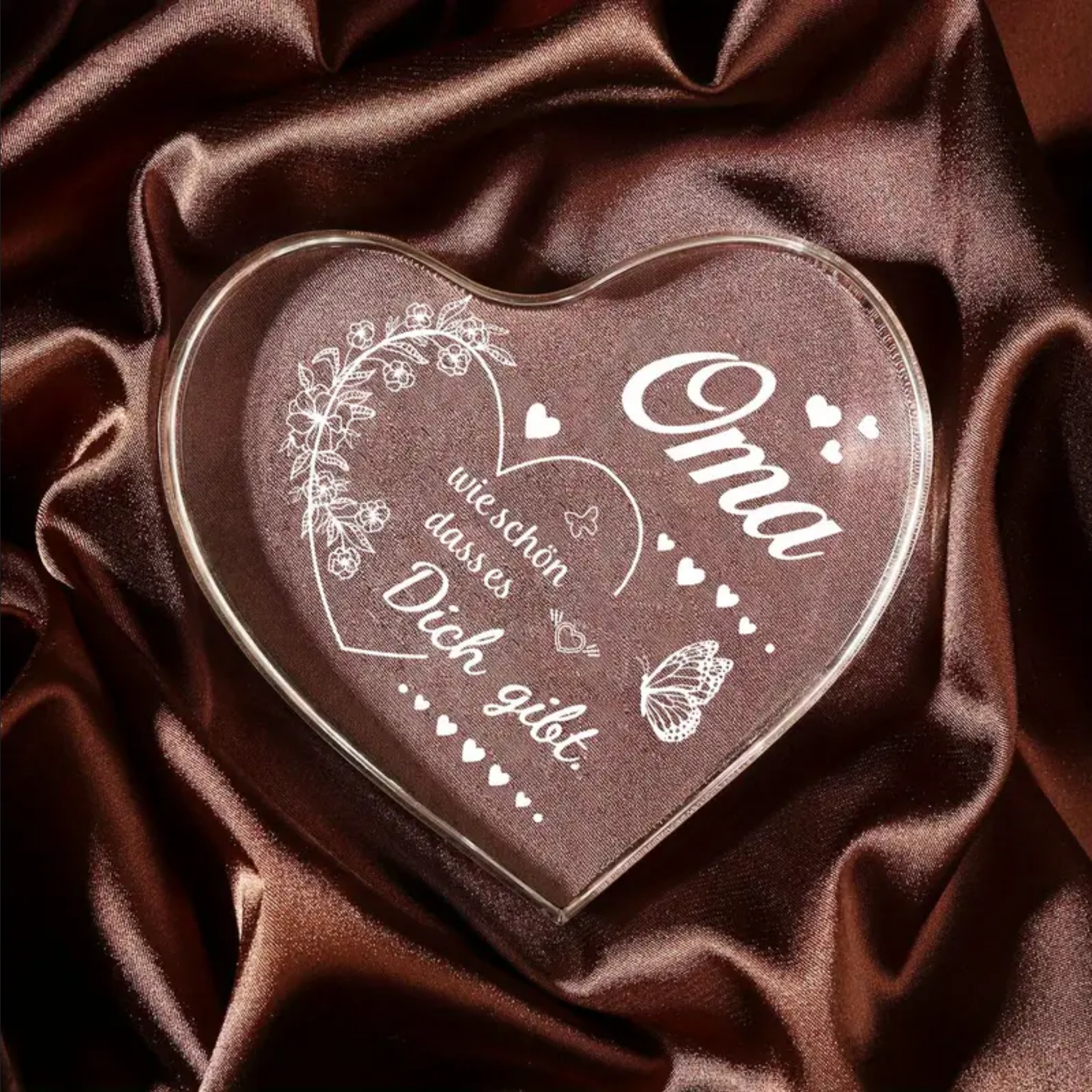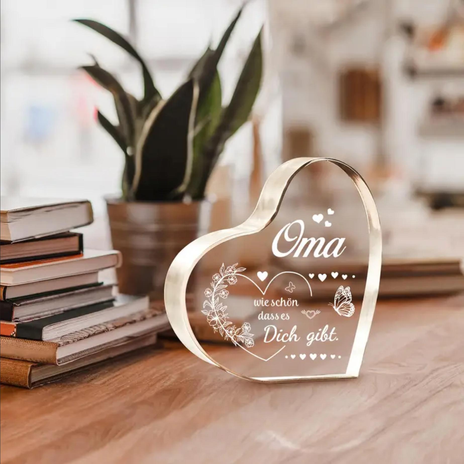 Acryl Herz, Acryl Aufsteller, mit Spruch:"Oma - wie schön, dass es Dich gibt..."