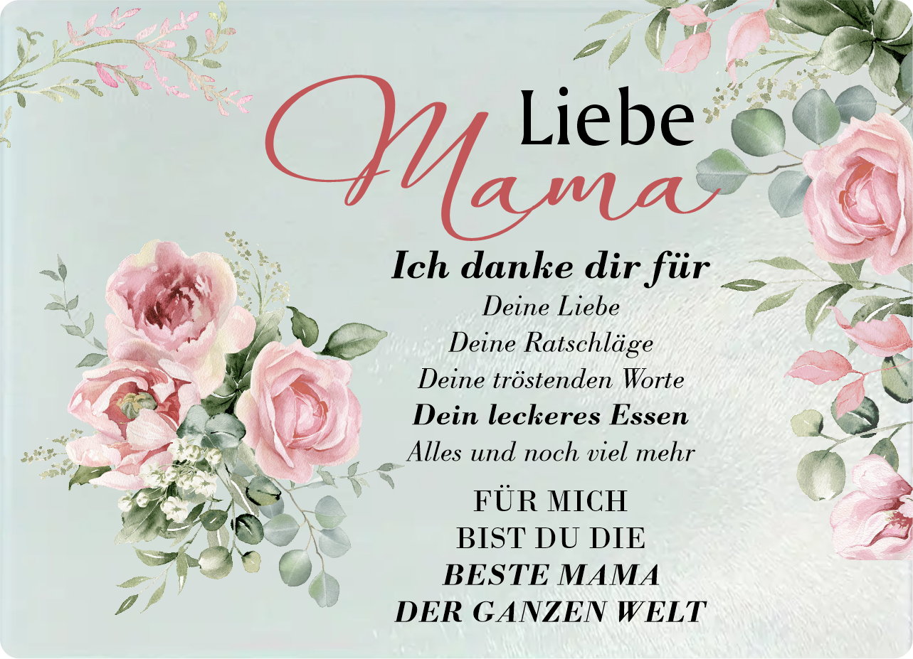 Glasschneidebrett, Frühstücksbrettchen, mit Motiv: Liebe Mama/ Oma/ Schwester ich danke dir für deine Liebe...