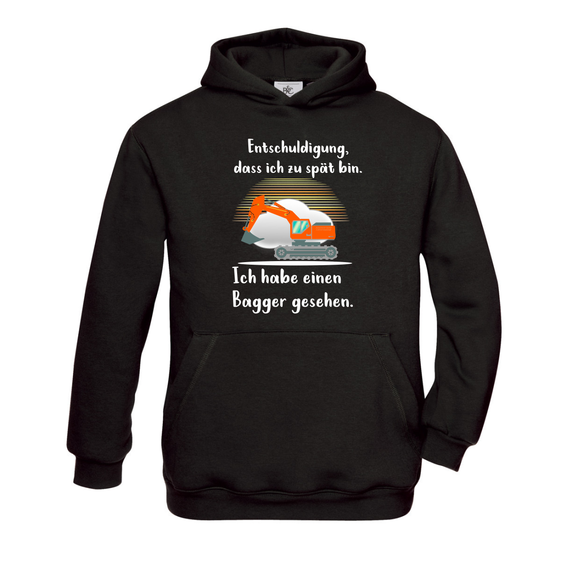 Kinder Hoodie, Kapuzenpullover "Entschuldigung, dass ich zu spät bin. Ich habe einen Bagger gesehen."