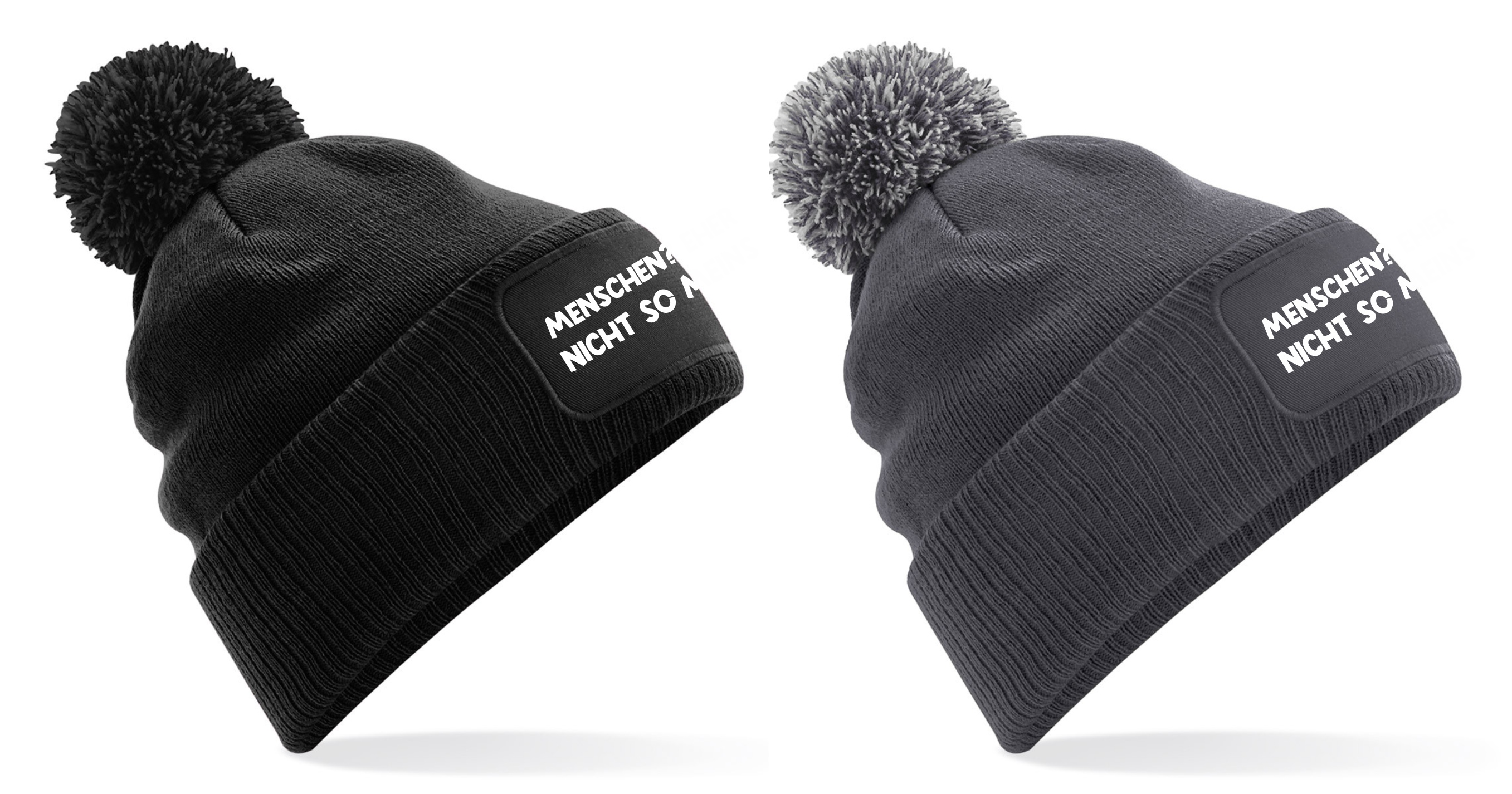 One Size Beanie mit Pompon, Bommelmütze mit Spruch: Menschen? Eher nicht so meins.