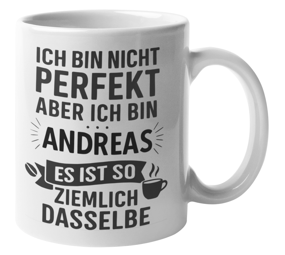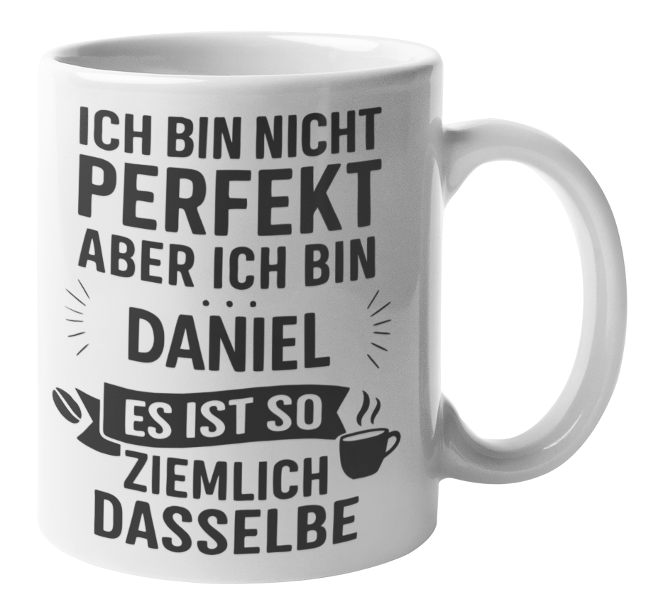 Schwarzweiße oder weiße Tasse "Ich bin nicht perfekt, aber ich bin - Wunschname - es ist so ziemlich dasselbe "