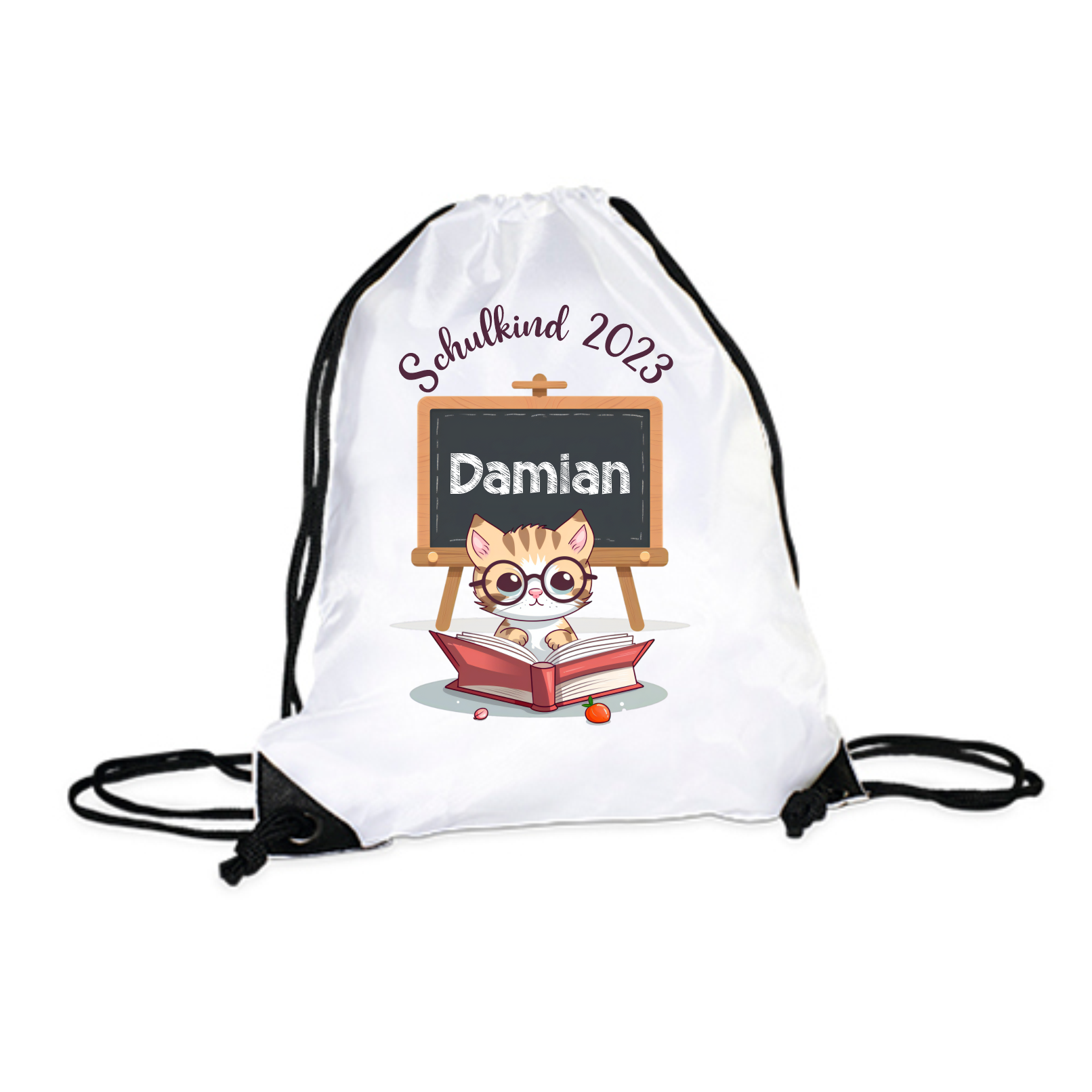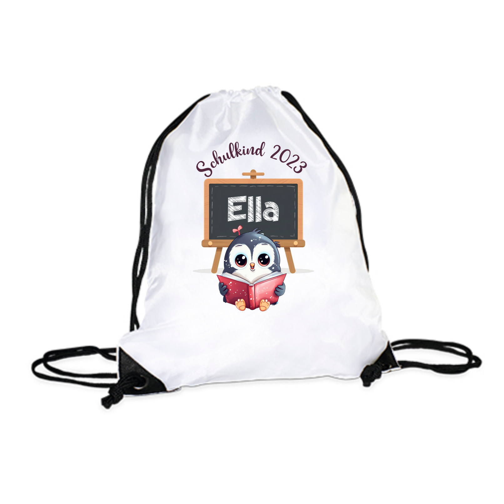 Turnbeutel "Schulkind 2023 Motiv Katze oder Penguin" mit Wunschnamen